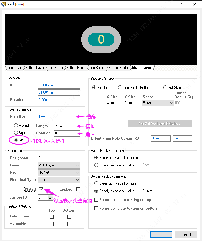 AD可以直接畫出槽孔,此軟件選擇Slot設計槽孔很方便的。